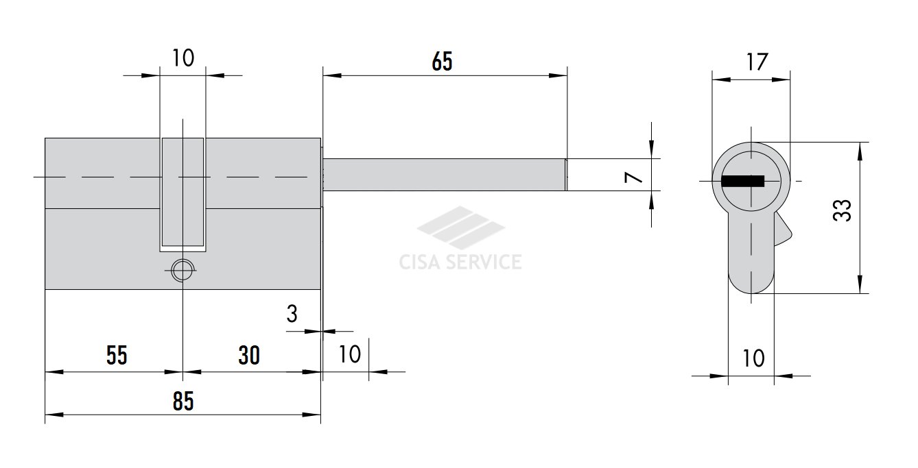 OP3S7.92.0.12.C5 Cisa AP4 S цилиндр 85 (55x30) кл/дл.шток (никель)