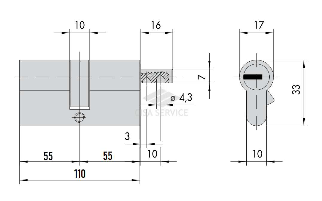 Типоразмер цилиндра, мм110мм (55х55) или (50+10+50)