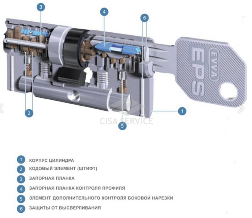 Система кодирования EPS состоит из трех уровней: профиль ключа, боковая нарезка и кодирующие штифты. Комбинирование этих элементов дает высокий уровень секретности.